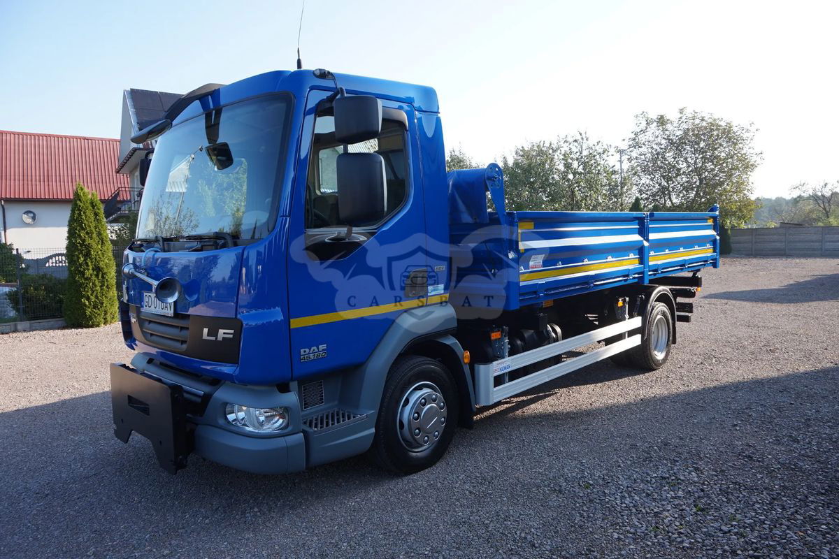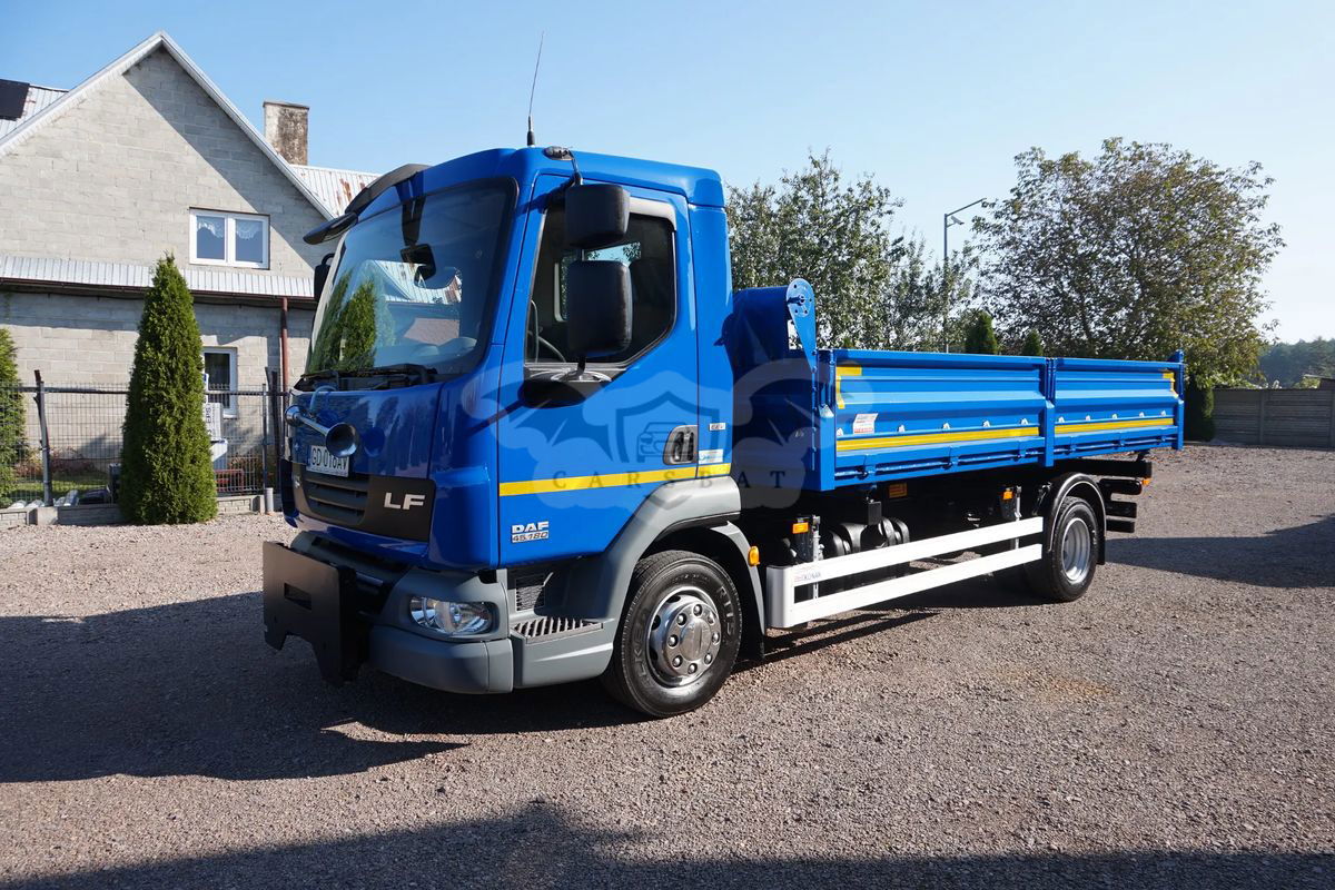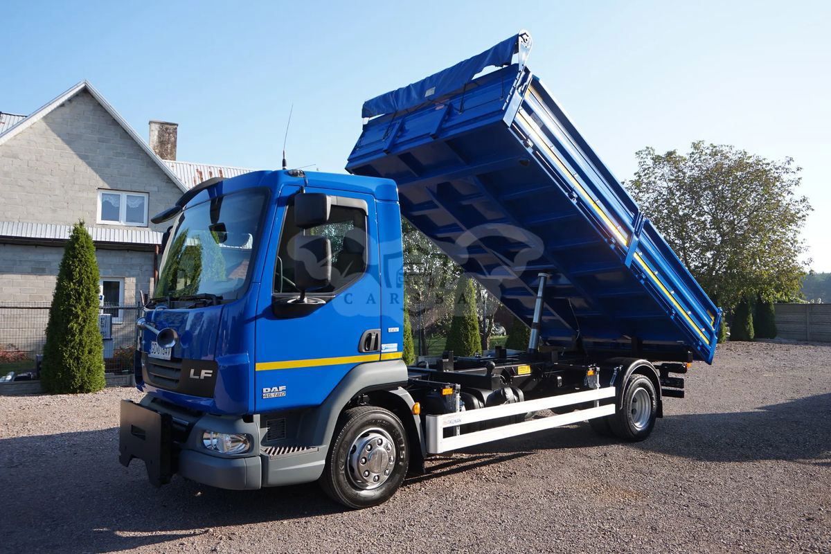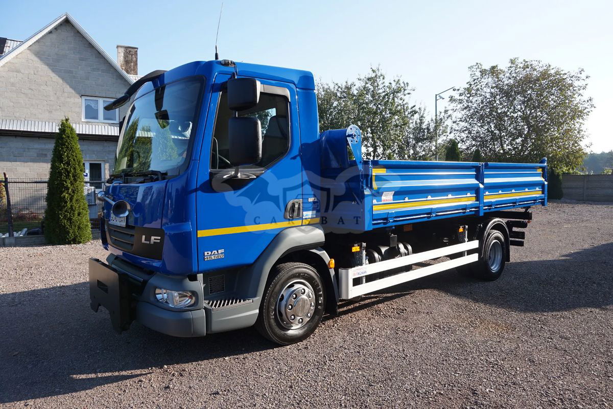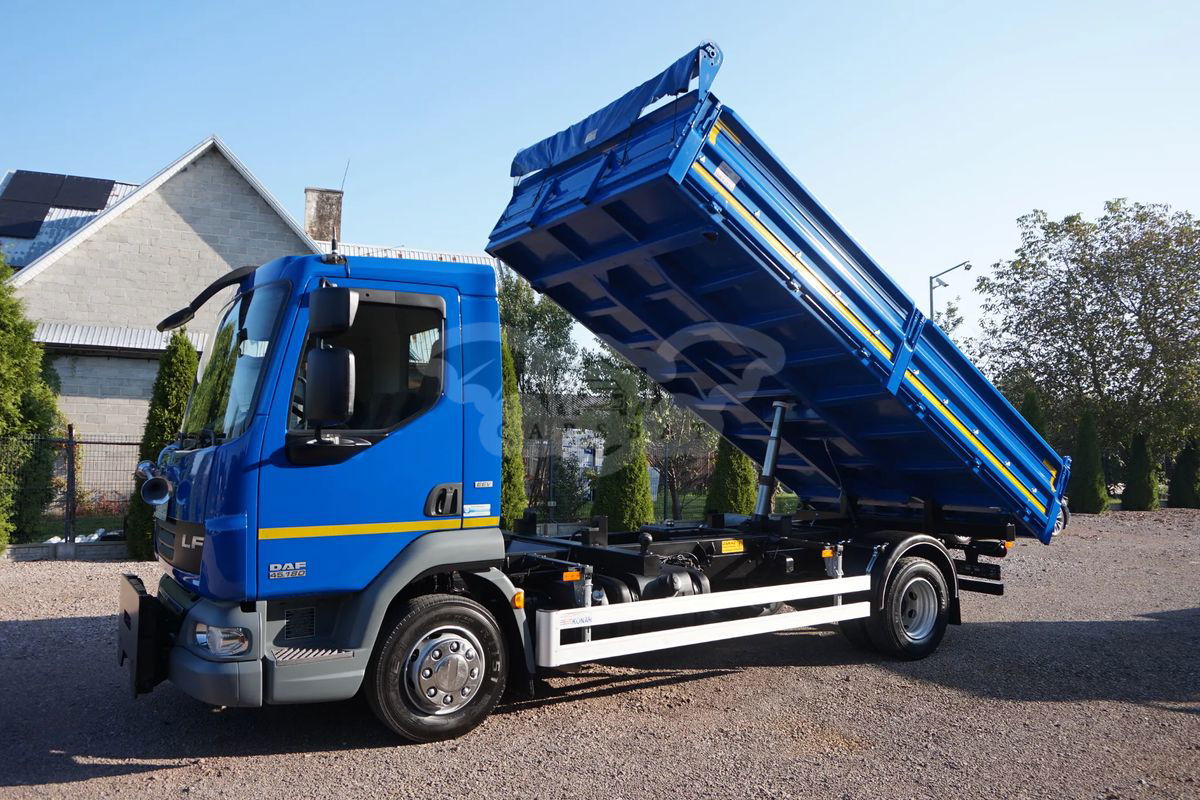DAF LF 45 WYWROTKA - 3 STRONNA + PŁUG SaMASZ. KUPIONY W POLSKIM SALONIE. SERWISOWANY W ASO DAF. PRZEBIEG TYLKO 87 948 TYS. KM. STAN IDEALNY. FABRYCZNA WYWROTKA + CZOŁOWNICA Z PŁUGIEM. DMC. 11 990 kg DOP. ŁAD. 6 430 kg ZABUDOWA WYWROTKA FIRMY KONAR WYM. 4.80 x 2.48 x 0.60 m. PŁUG FIRMY SaMASZ STEROWANY W KABINIE KIEROWCY. NORMA EMISJI SPALIN E5 EEV. ZAWIESZENIE PRZÓD I TYŁ RESOR. NOWE OPONY. STAN IDEALNY. KONTAKT : . PODANA CENA JEST CENĄ NETTO. FAKTURA VAT.