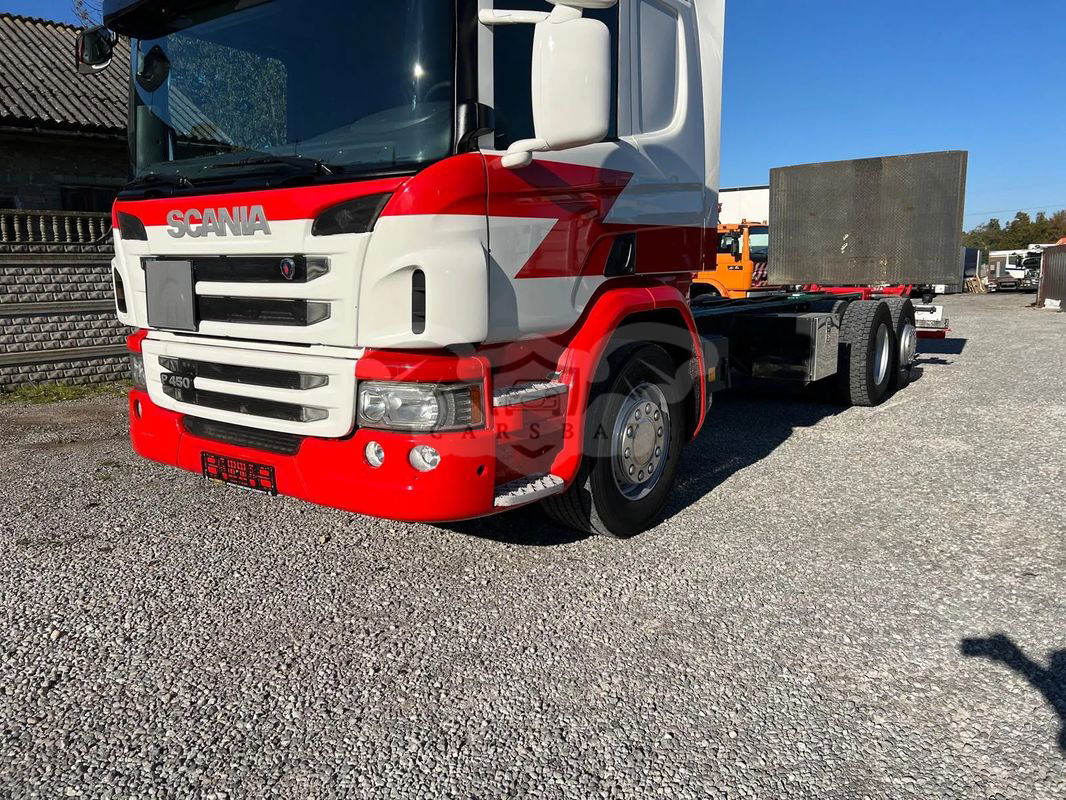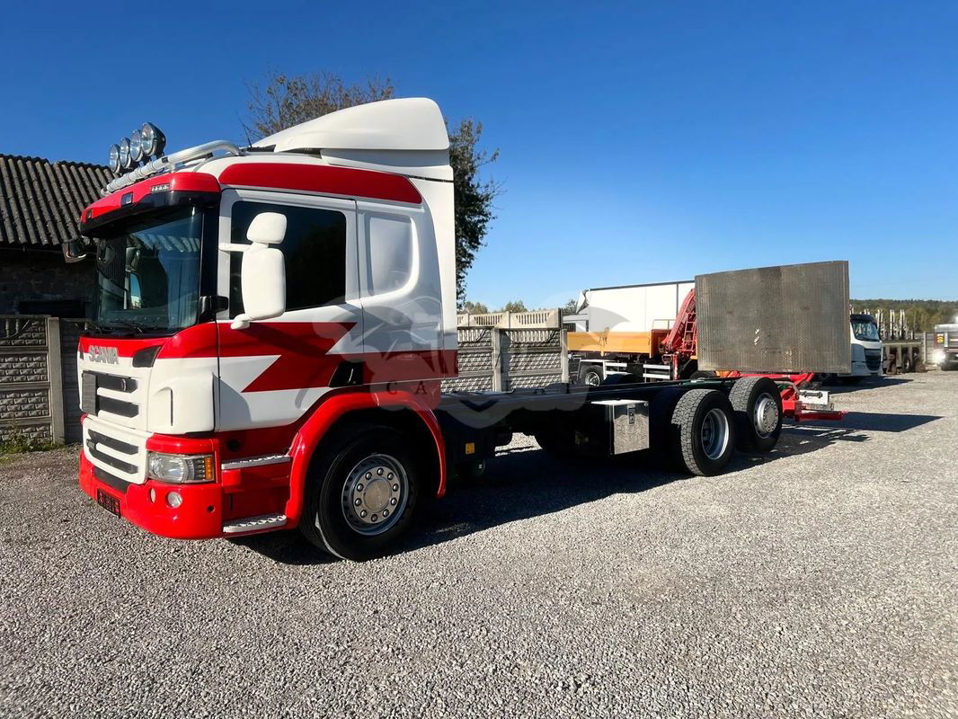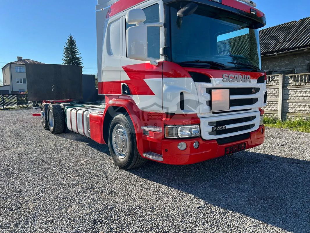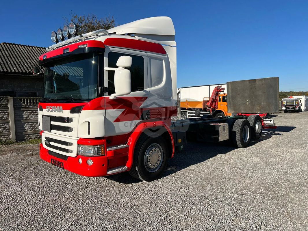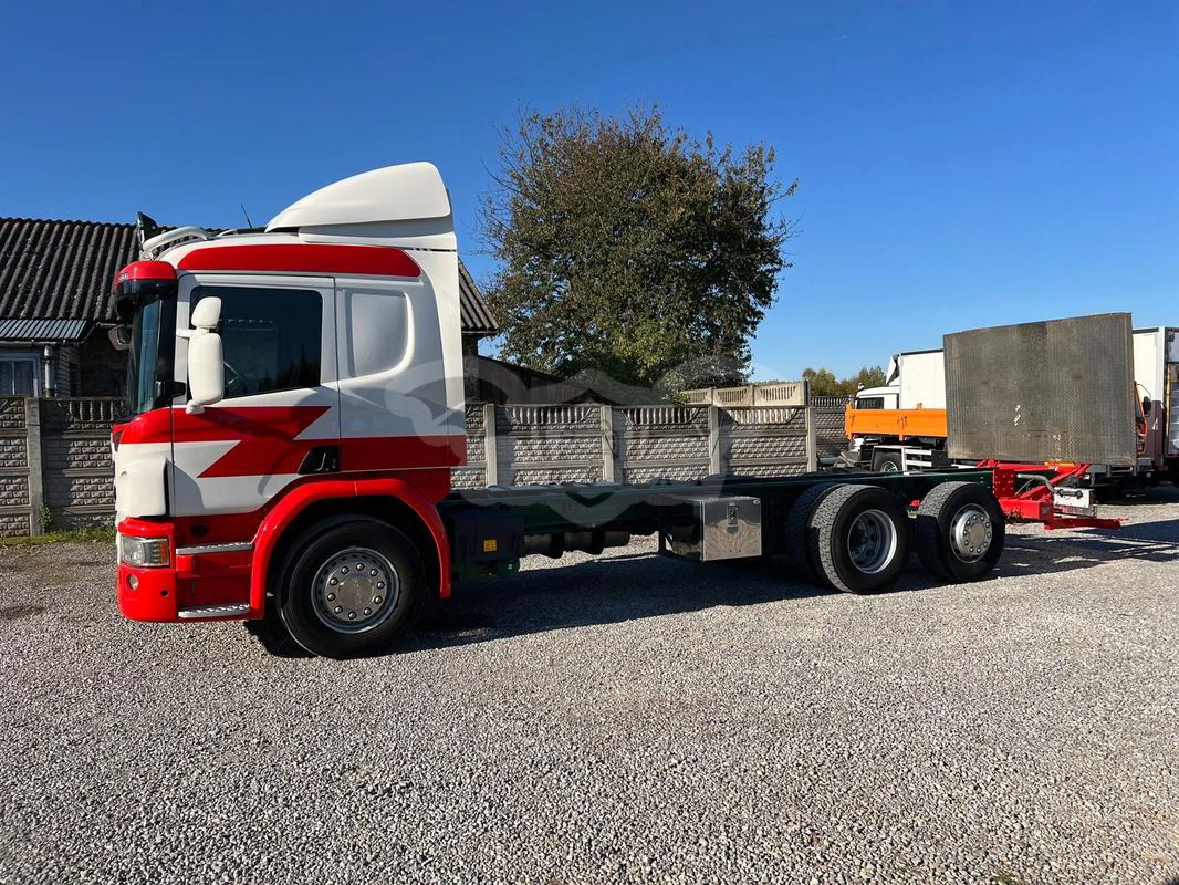 Scania P450 / 6x2 / Rama do zabudowy / Emisja spalin - Euro 6 NR VIN: YS2P6X20002100050 Rok produkcji - 2014 PRZEBIEG – 612 000 KM Moc silnika - 450 KM DMC – 26000 KG 6x2 - 3 oś podnoszona i skrętna Długość ramy do zabudowy - 7,80 m Rozstaw osi - 4,70 m Koła - 315/70/22,5 WYPOSAŻENIE: Kabina sypialna Winda załadowcza Klimatyzacja Webasto Tempomat Elektryczne szyby Elektryczne lusterka Pneumatyczne zawieszenie Skrzynia biegów automatyczna Blokada mostu Hamulec górski ABS ASR Sprowadzony Oryginalny przebieg CENA: 96 000 zł. netto Więcej informacji udzielimy telefonicznie , zapraszamy do kontaktu.