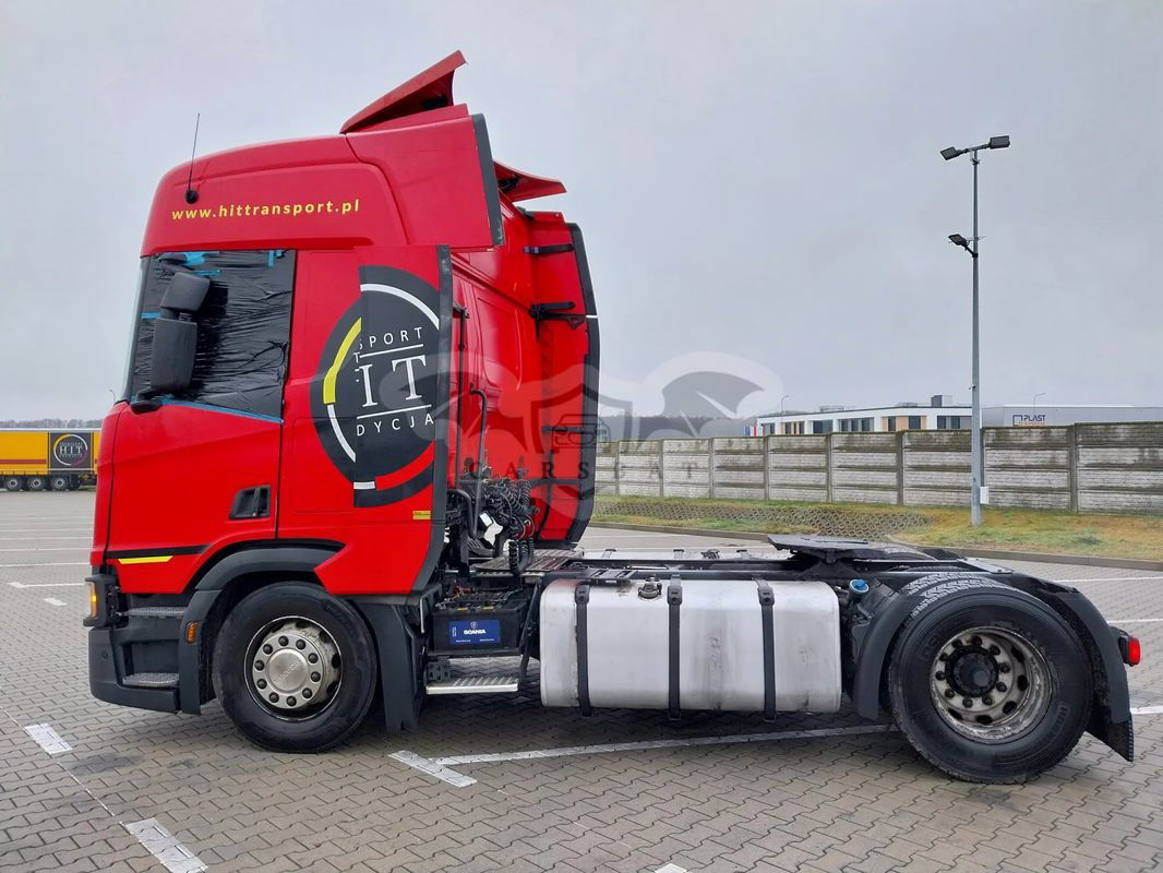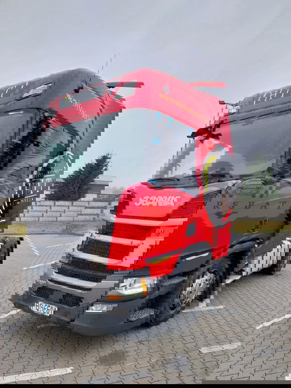 Scania uszkodzona jest kabina rozwarstwiona i przekrzywiona jak na zdjęciach Rama prosta pojazd jeździł do samego końca serwisowany w ASO nie sprawiał problemów technicznych Szkoda powstała na parkingu gdy pojazd był zaparkowany