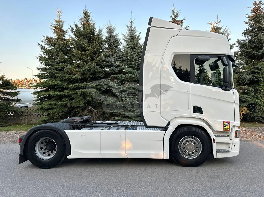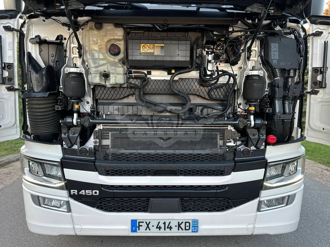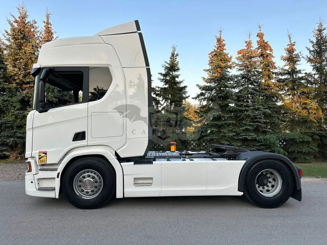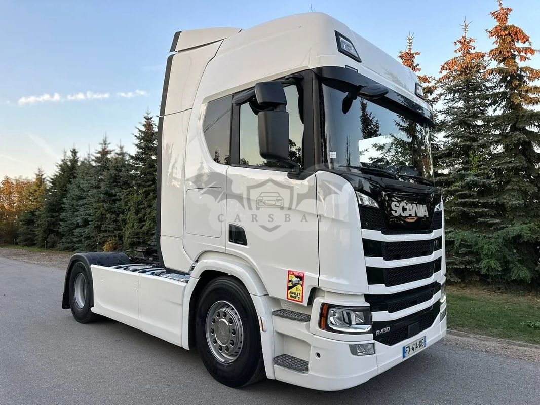 Ciągnik siodłowy SCANIA R 450 sprowadzony z Francji, rok produkcji 2021. Samochód jest całkowicie w stanie oryginalnym, lodówka, zwalniacz, opony w bardzo dobrym stanie. Przebieg 650 000 km, motogodziny 9656, sprzęgło 100%, klocki hamulcowe 80%.