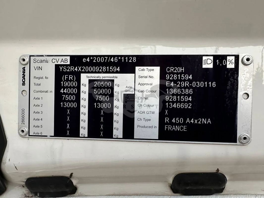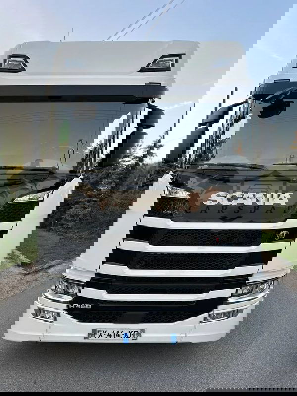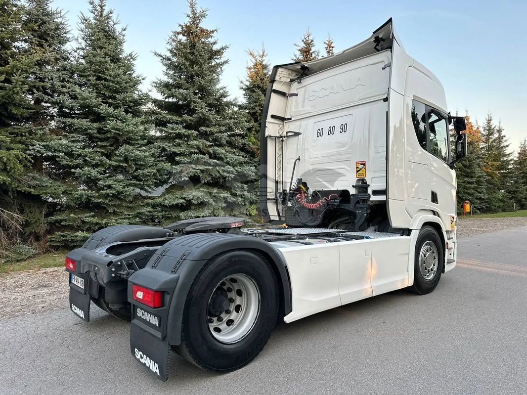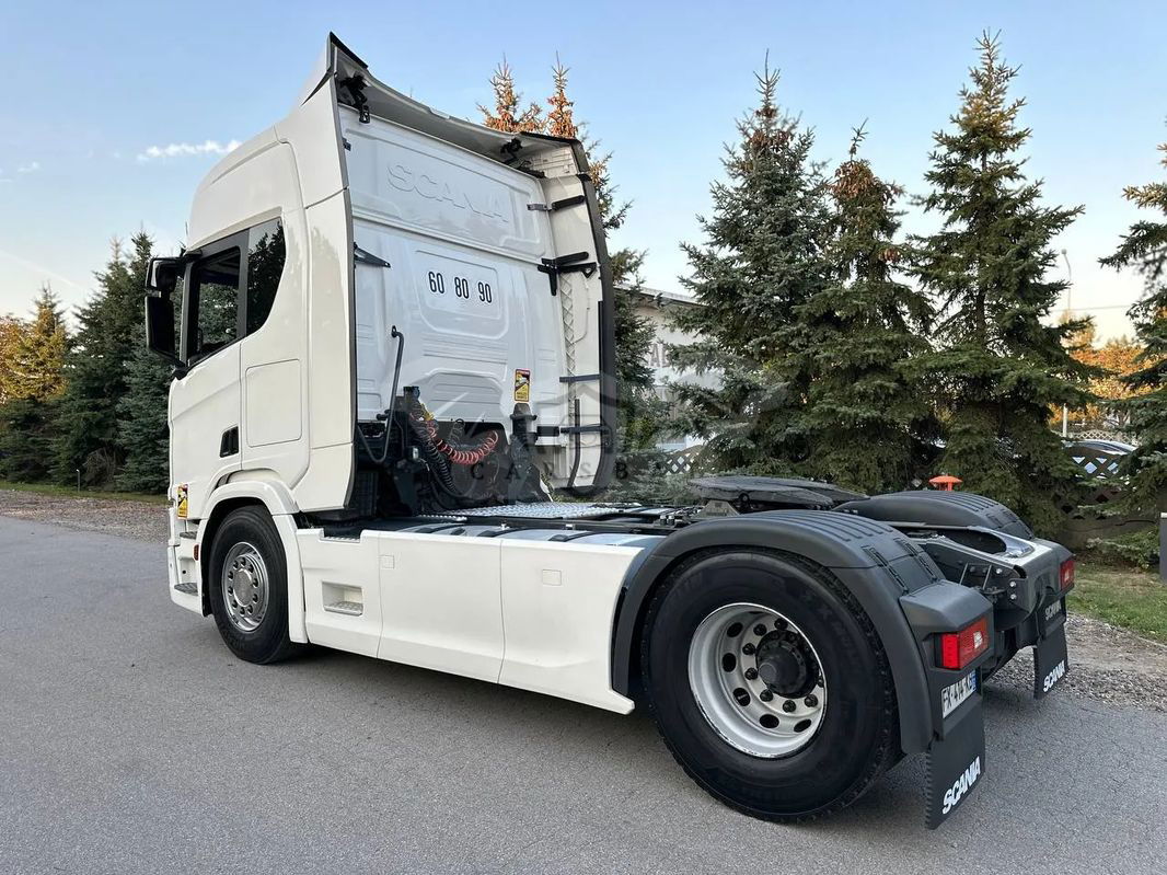 Ciągnik siodłowy SCANIA R 450 sprowadzony z Francji, rok produkcji 2021. Samochód jest całkowicie w stanie oryginalnym, lodówka, zwalniacz, opony w bardzo dobrym stanie. Przebieg 650 000 km, motogodziny 9656, sprzęgło 100%, klocki hamulcowe 80%.