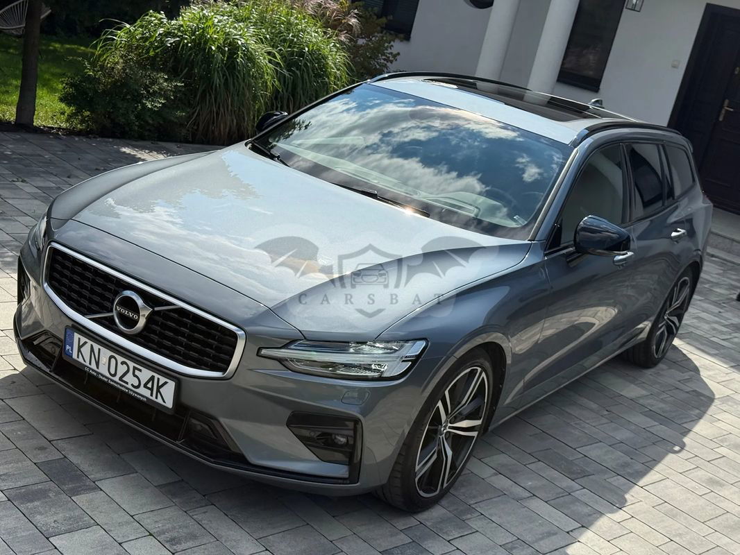 Szary Volvo V60 II T6 AWD R-Design 2020 roku | Benzyna