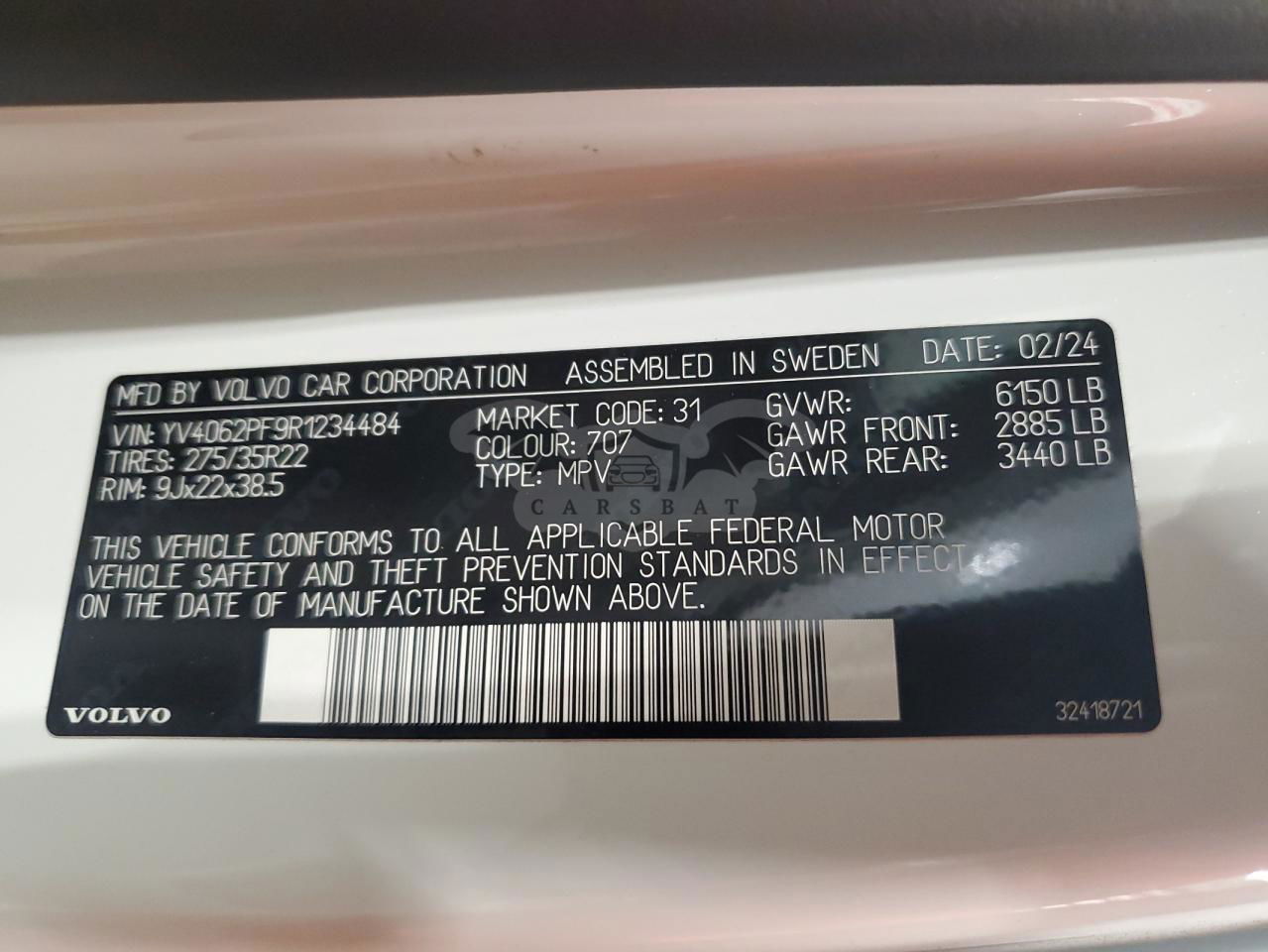 • VIN: YV4062PF9R1234484