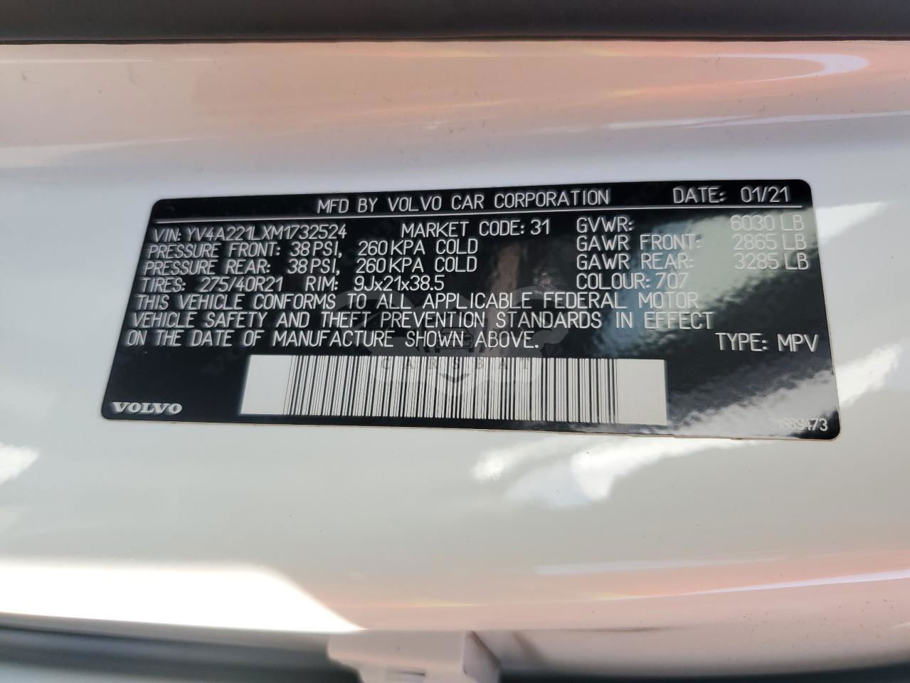 • VIN: YV4A221LXM1732524