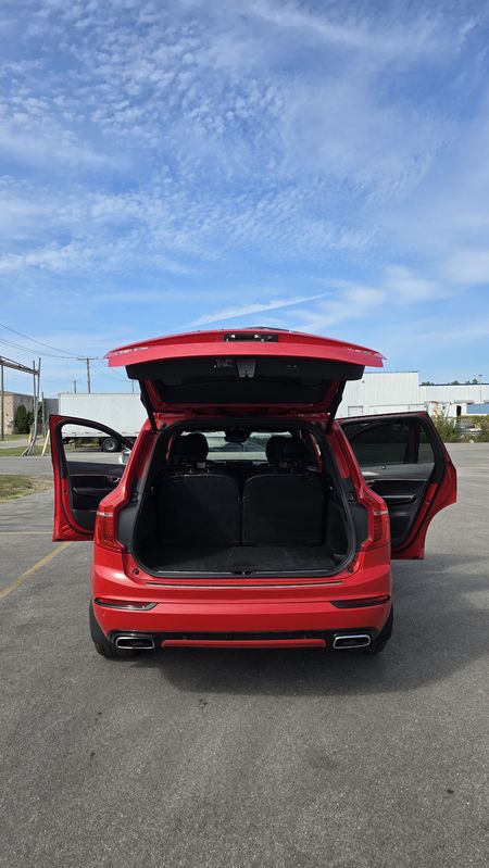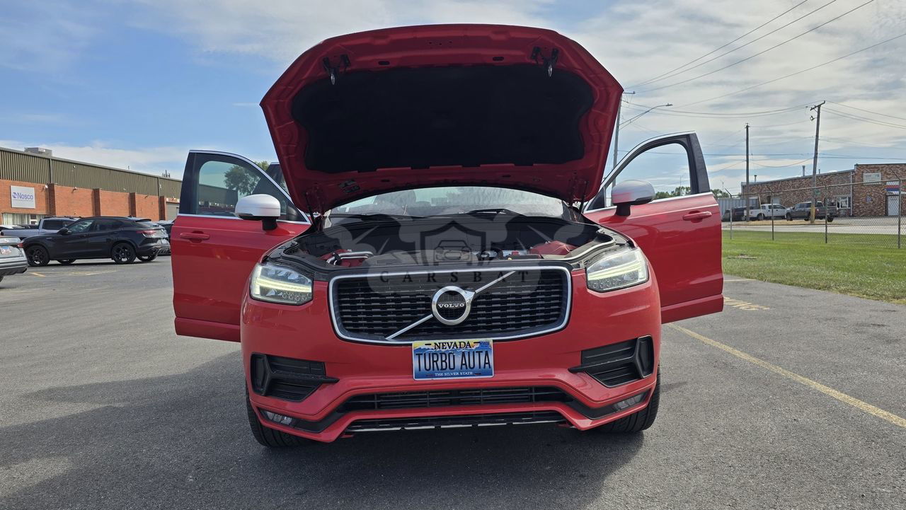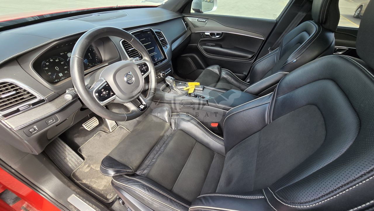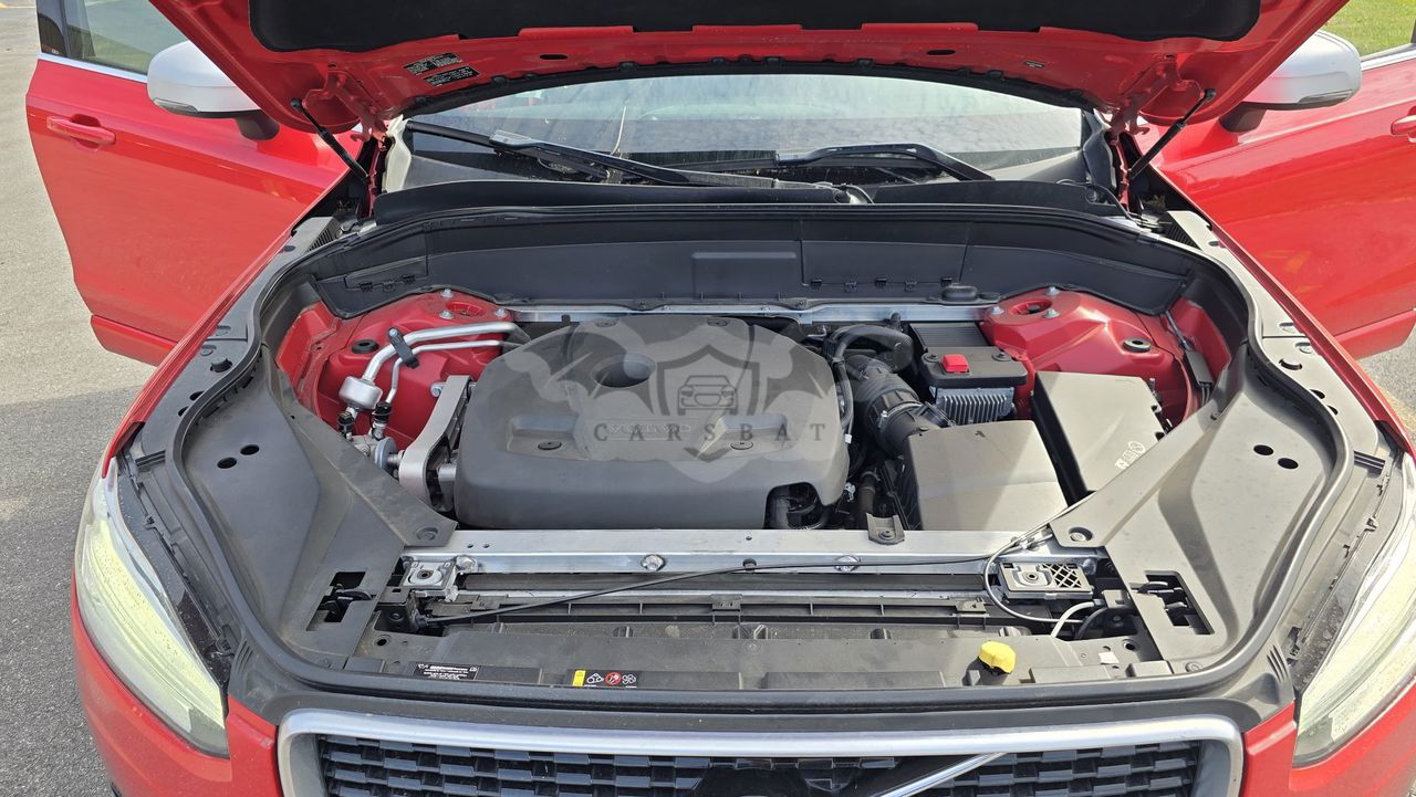 Czerwony Volvo XC90 II T6 AWD R-Design 7os 2019 roku | Benzyna