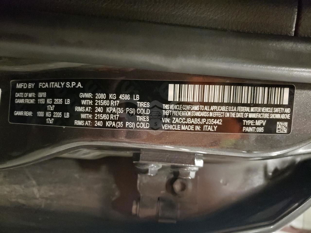• VIN: ZACCJBAB5JPJ35442