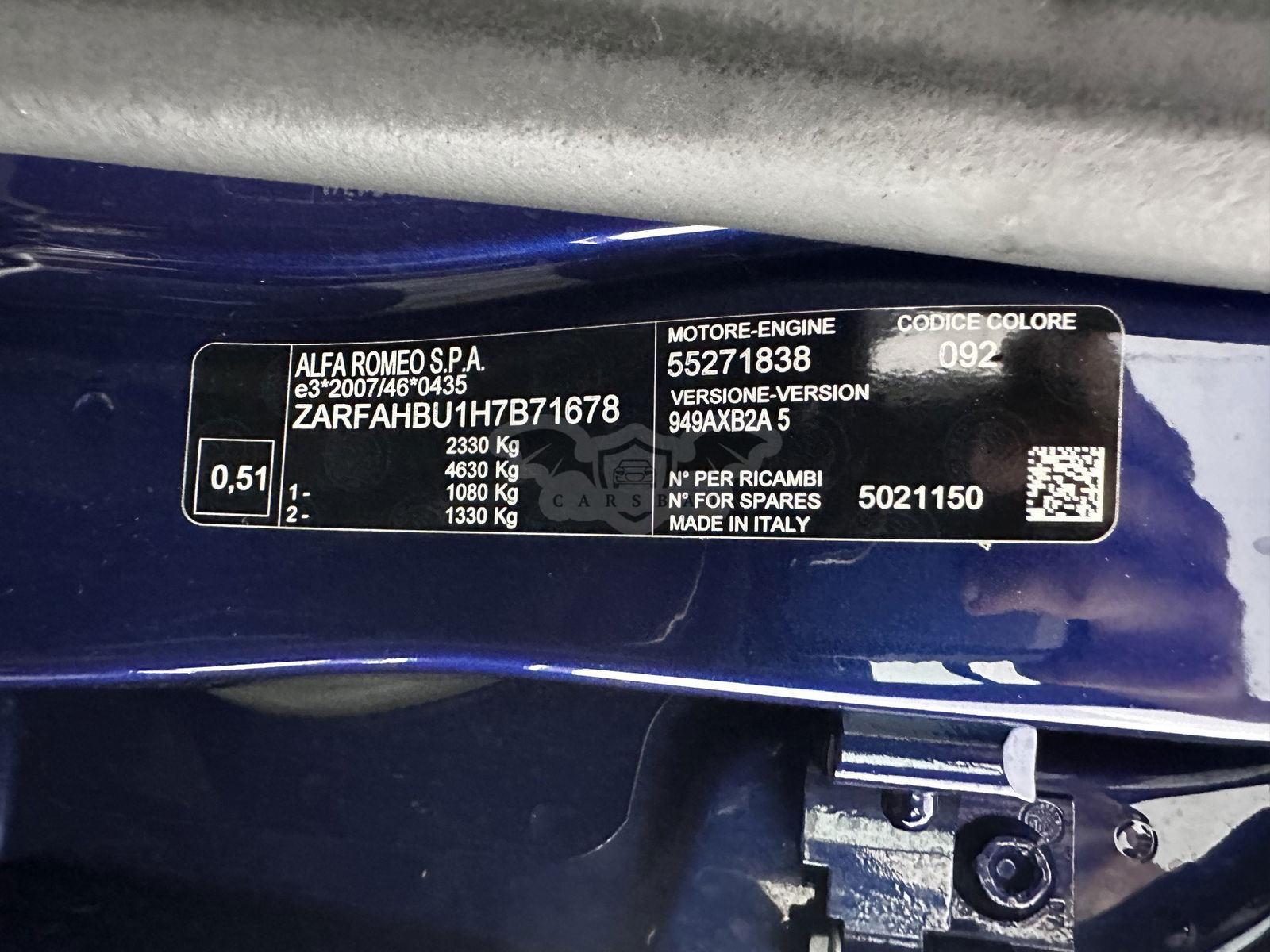 • VIN: ZARFAHBU1H7B71678