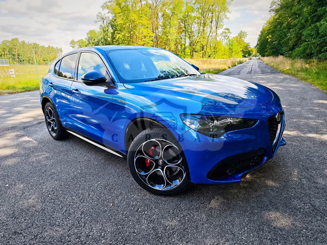 Niebieski Alfa Romeo Stelvio 2.0 Turbo Veloce Q4 2023 roku | Benzyna