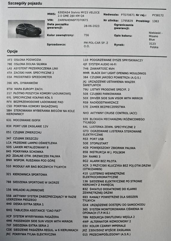 Średnia cena Alfa Romeo Stelvio 2023 z przebiegiem 0-15000 km