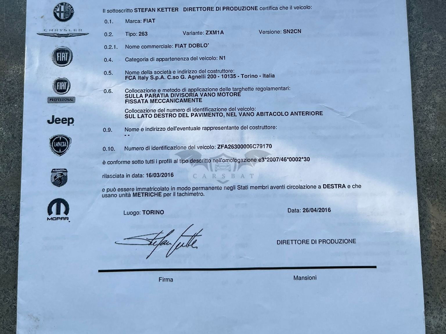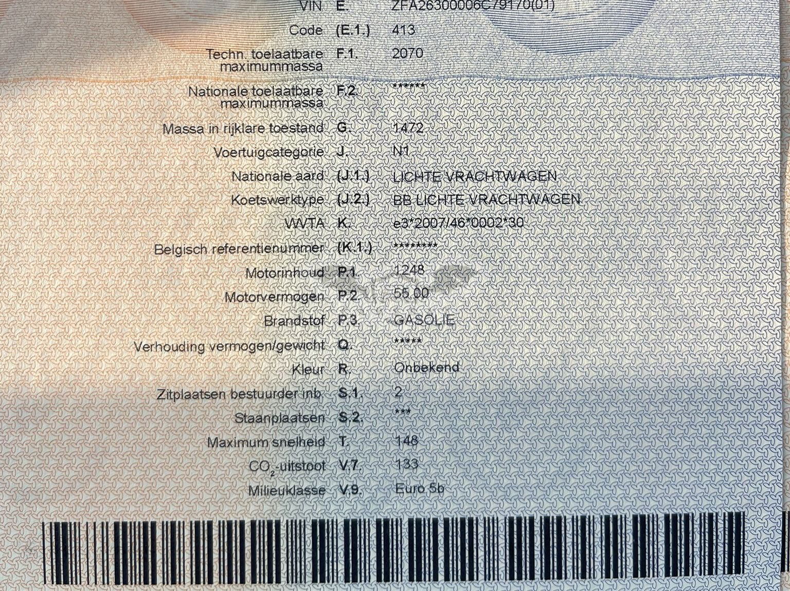 • VIN: ZFA26300006C79170