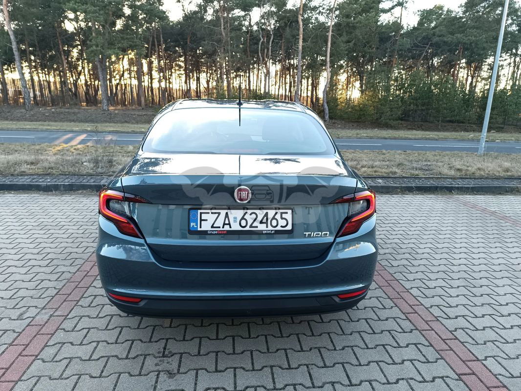 Sprzedam Fiata TIPO Sedan Benzyna MY21-1.0 100 km Life. Samochód zakupiony w autoryzowanym salonie. Jestem pierwszym właścicielem. rok produkcji 2021 r. data pierwszej rejestracji marzec 2021 r. stan licznika: 107800 km Gwarancja producenta samochodu ważna do marca 2026 roku lub do limitu kilometrów 120 000 km. Polisa OC ważna do września 2025 r. Cena 59 000 zł (do negocjacji) Zachęcam do kontaktu: Samochód serwisowany wyłącznie w ASO, zgodnie z harmonogramem przeglądów. - w grudniu 2024 r. wymieniono tarcze oraz klocki hamulcowe przednie - w marcu 2025 r. został wymieniony katalizator Na życzenie kupującego udostępnię do wglądu pełną historię pojazdu. Po wcześniejszym umówieniu możliwość wersyfikacji pojazdu w ASO lub w wybranej stacji diagnostycznej (okolice Zielonej Góry). Na prawym boku znajduje się zarysowanie. opis pojazdu * kolor zewnętrzny: niebieski oceano * kolor wewnętrzny: tapicerka materiałowa w kolorze czarnym z podwójnymi przeszyciami * felgi stalowe stylizowane 16” *aktywny przedni grill z otwieranymi klapami Wersja wyposażenia LIFE (najbogatsza wersja) dodatkowo rozszerzona o poniższe pakiety: *Pakiet Bezpieczne Parkowanie - Kamera cofania z dynamicznym torem jazdy - Czujniki parkowania przednie - Czujniki parkowania tylne *Pakiet LED Plus - Przednie światła w technologi Full LED - Asystent świateł drogowych LAY - Światła tylne w technologii LED - Czujnik zmierzchu - Czujnik deszczu - Lusterko wsteczne elektrochromatyczne * GRATIS gotowy zestaw kół zimowych: - 4 szt. opon premium Bridgestone Blizzak LM005 205/55/R16 91H (data zakupu październik 2023 r.). - opony założone na feldze stalowej (4 szt. felgi). *koło zapasowe pełno wymiarowe *2 szt. kluczyków wybrane elementy wyposażenia: Bezpieczeństwo: • asystent świateł drogowych • ogranicznik prędkości • system utrzymania pasa ruchu • inteligentny asystent prędkości z systemem rozpoznawania znaków drogowych • Immobiliser Fiat Code • poduszka powietrzna kierowcy oraz pasażera • poduszki powietrzne przednie boczne • poduszki powietrzne kurtynowe • system ABS • System ESC, Panic Brake Assist, Traction Control, Drag Torque Control, Electronic Rollover Mitigation, Hill Hold Contro • System informujący o zapięciu pasów dla kierowcy i pasażerów • system monitorowania ciśnienia powietrza w oponach (TPMS) • system wykrywania zmęczenia kierowcy • Przednie reflektory w technologii Full LED • Światła do jazdy dziennej LED • Światła przeciwmgielne • Światła tylne w technologii LED • Trzeci tylny zagłówek • Wspomaganie kierownicy (elektryczne) Dualdrive • Zaciski hamulcowe z tarczami o wymiarach 281x26 Komfort / funkcjonalność • czujniki temperatury zewnętrznej • czujniki parkowania przód oraz tył • dywaniki Fiat gumowe oraz mata w bagażniku • dzielona kanapa w stosunku 60/40 • elektrycznie sterowane szyby przednie oraz tylne • Fotel kierowcy z regulacją odcinka lędźwiowego • fotel kierowcy z regulacją wysokości • Kamera cofania z dynamicznymi liniami toru jazdy • kierownica i gałka dźwigni zmiany biegów pokryte skórą • klimatyzacja automatyczna jednostrefowa • kieszenie w fotelach przednich • Kolumna kierownicy z regulacją w dwóch płaszczyznach • lusterka boczne podgrzewane, elektrycznie sterowane, obudowa w kolorze nadwozia • ogrzewanie tylnej szyby • podłokietnik przedni • system Start&Stop • Tempomat Audio / Telematyka • 7” kolorowy wyświetlacz TFT między zegarami • Funkcja Android Auto / Apple Car Play • kierownica ze sterowaniem systemem multimedialnym Uconnect 7” • port USB • radio Uconnect z 7” ekranem dotykowym, systemem Bluetooth oraz DAB