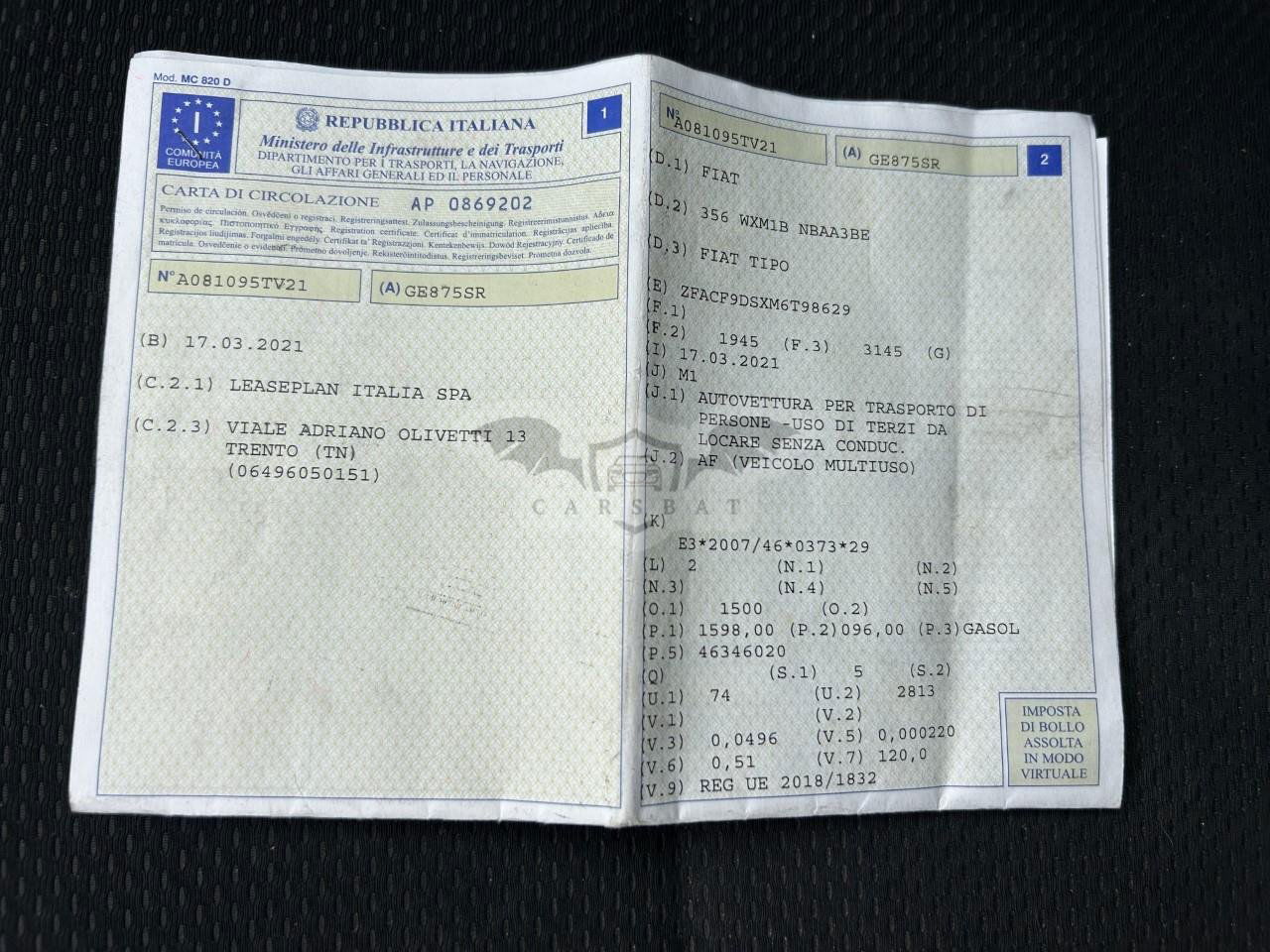 • VIN: ZFACF9DSXM6T98629