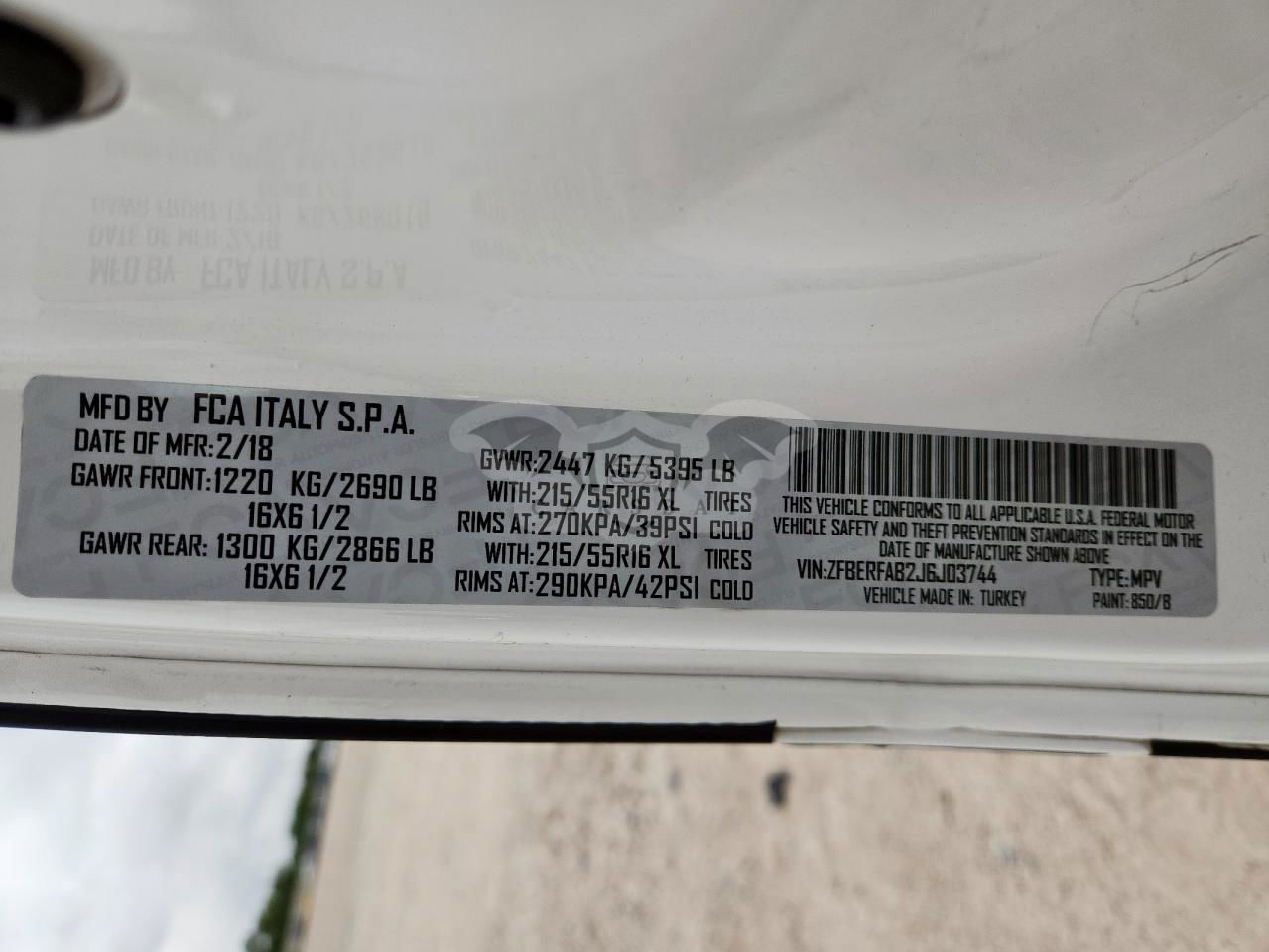 • VIN: ZFBERFAB2J6J03744
