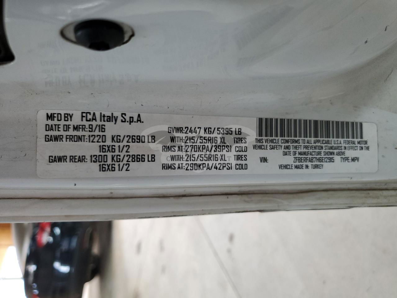 • VIN: ZFBERFAB7H6E12915